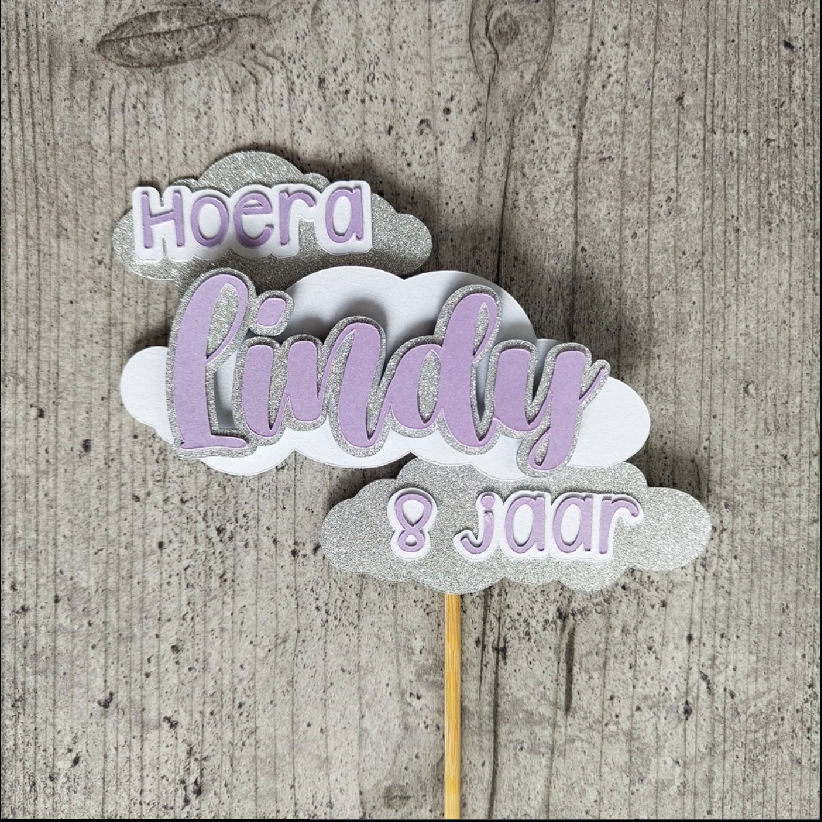 Als kers op de taart (pun intended 😉 ) is een unieke caketopper natuurlijk het einde. Jouw naam en leeftijd geheel in eigen stijl of bijpassend thema gemaakt. Je kan zelf kiezen hoe simpel of uitgebreid je de caketopper maakt. Ook kan je er een print bij doen van de jarige bijvoorbeeld voor de finishing touch.