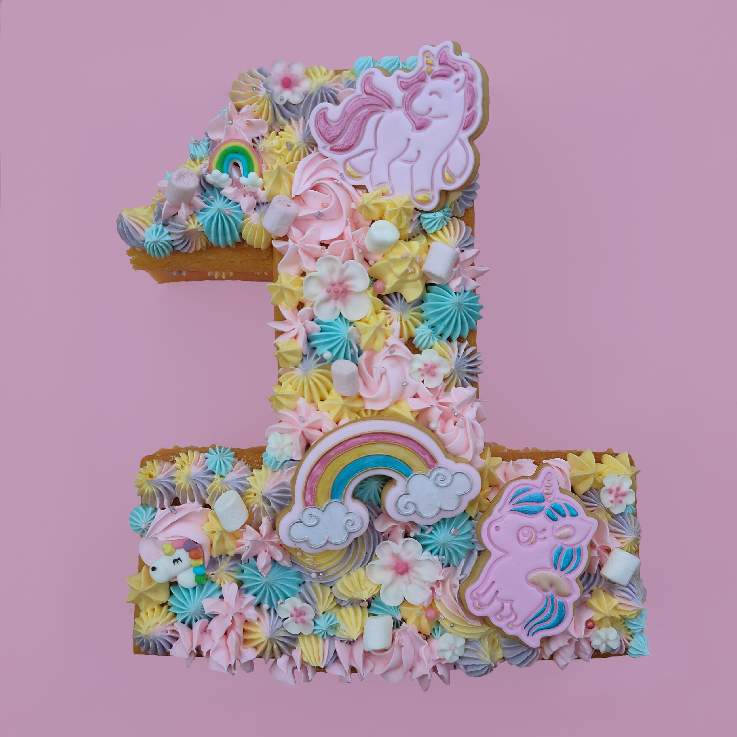 De prijs voor de taart is inclusief de vele verschillende toefjes en vormen botercrème decoratie en sprinkles.